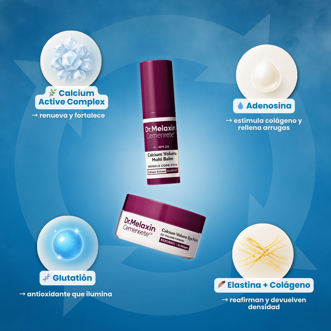 El Duo Anti Edad combina la potencia del calcio con tecnología regeneradora para estimular la producción natural de colágeno y densificar la piel desde adentro.