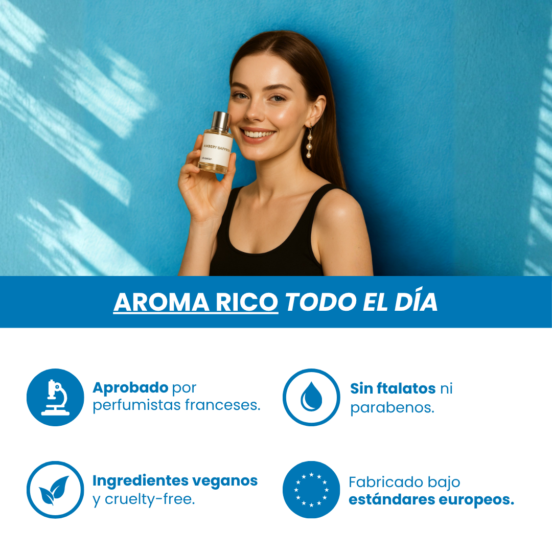Está inspirado en Baccarat Rouge 540, una de las fragancias más exclusivas del mundo, pero sin su precio elevado. Obtienes la misma sensación de lujo, atracción y sofisticación por una fracción del costo.