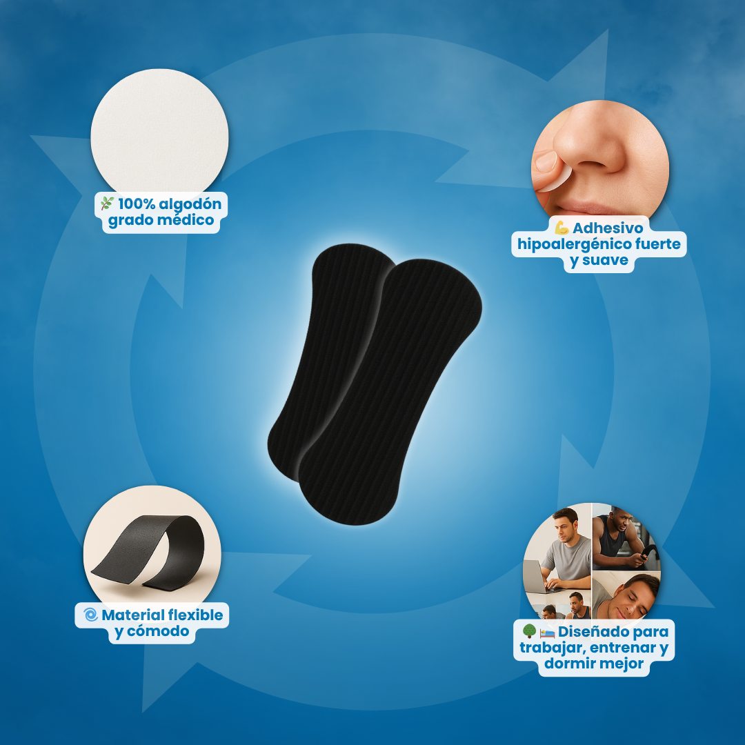 El diseño ergonómico de Mog Strips expande tus fosas nasales al instante, facilitando la respiración profunda desde el primer uso.