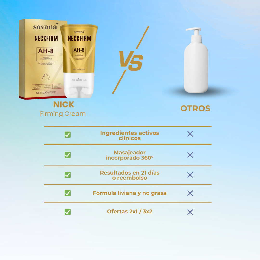 Sabemos que hay muchos productos que prometen y no cumplen. Por eso, NeckFirm™ está formulada con ingredientes clínicamente probados como el Acetyl Hexapeptide-8, usados en tratamientos de estética avanzada. Además, los resultados están avalados por pruebas reales y miles de clientas satisfechas.