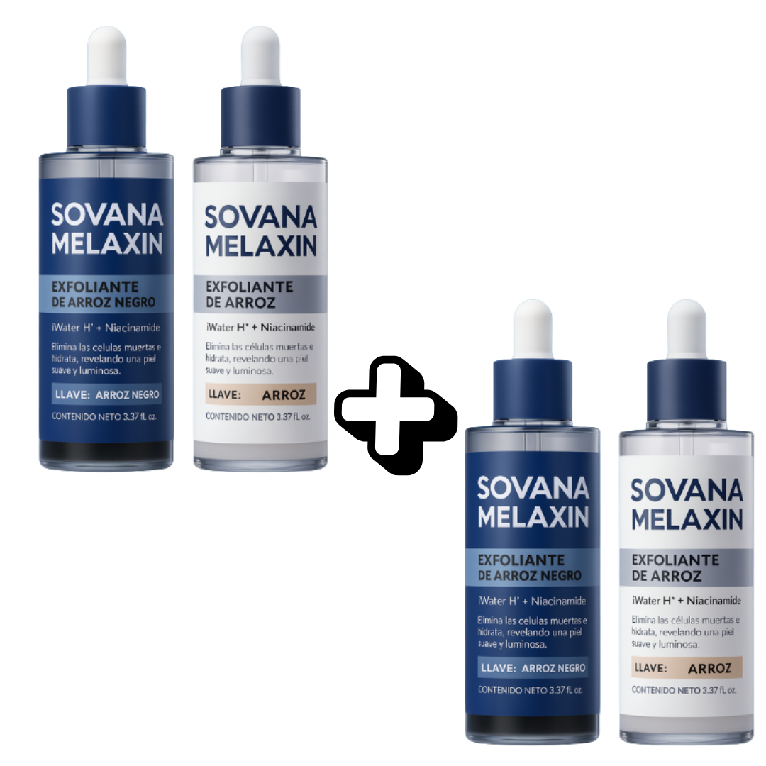 El Sovana Melaxin combina extractos de arroz y tecnología dermocosmética avanzada para renovar tu piel sin irritarla. Elimina células muertas, reduce puntos negros, hidrata profundamente y revela un brillo natural que se nota desde el primer uso.