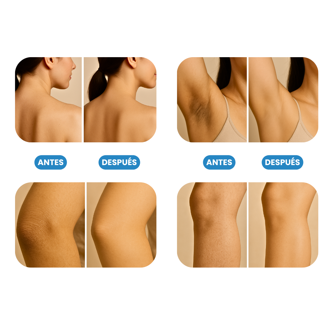 Desde la primera aplicación notarás la piel más suave y luminosa. En 7 días de uso constante, el tono se ve más uniforme y las zonas oscuras comienzan a aclararse.