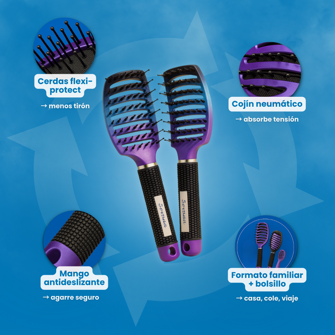 Con Sovana Ppbrush, el cambio se ve —y se siente— desde el primer cepillado. Olvídate del dolor, los tirones y los enredos eternos. En segundos, tu cabello pasa de rebelde a suave, brillante y fácil de peinar.